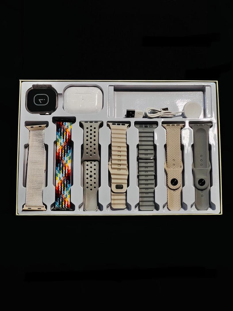 V17 Classic (45mm) + 5RD Generation — پک 10 در 1 شامل ساعت هوشمند، ایرباد بیسیم و لوازم جانبی؛ مناسب برای استفاده روزمره است.